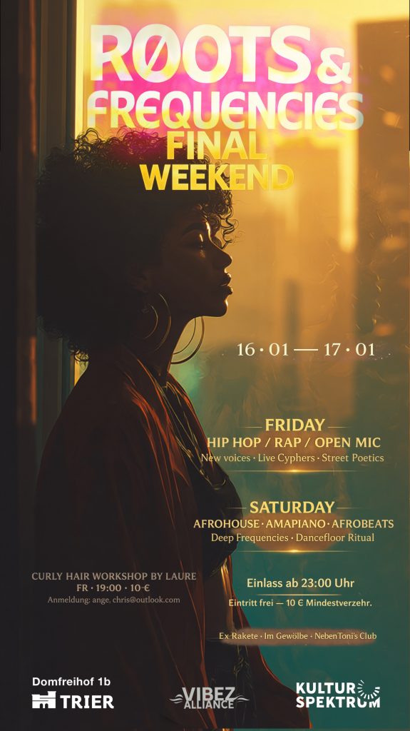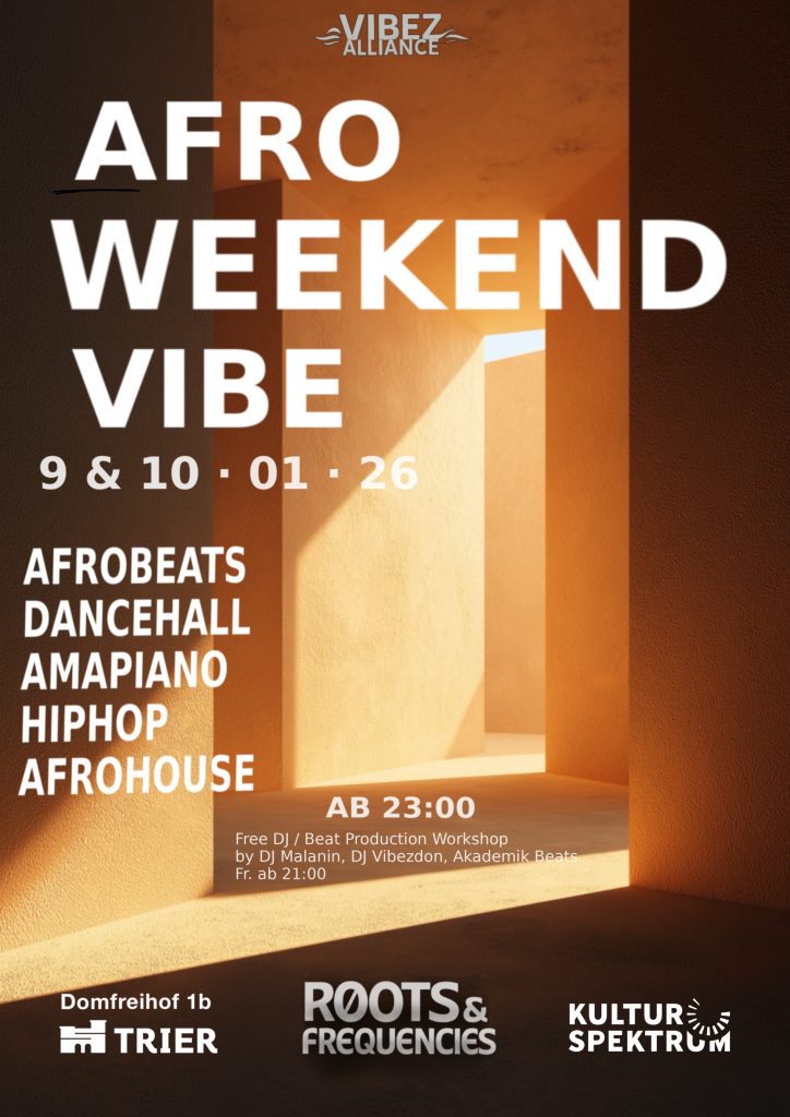 AFRO FRIDAY ist Teil der Reihe Roots & Frequencies und verbindet afrikanisch geprägte Clubmusik mit Tanz, Community und Energie.